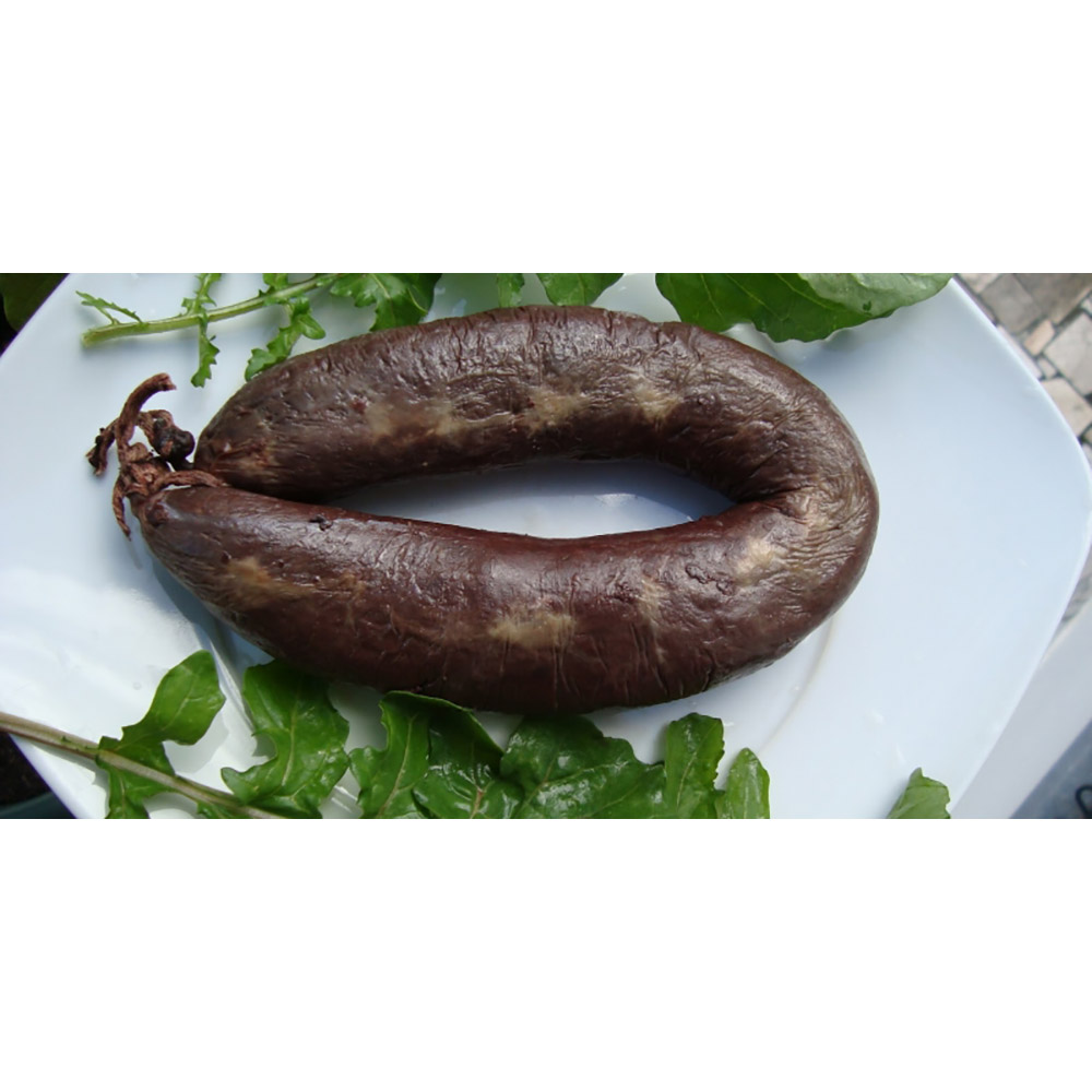INGREDIENTES: Gordura de suíno, farinha de milho e TRIGO, água, sangue, cebola, salsa alho e especiarias.